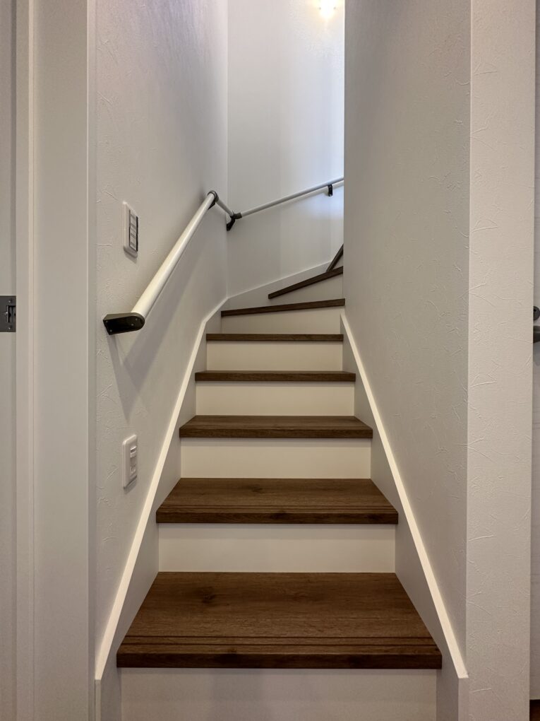 蹴込板をホワイトにすることで、視覚的に空間を広く見せる効果が期待できます。また、階段の段差が分かりやすくなるため、特にご高齢の方やお子様がいるご家庭では安全性の面でもおすすめします!