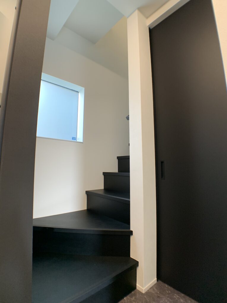 お家のコンセプト「ホテルライクな空間」に合うよう階段をブラックにしてスタイリッシュな仕上がりになりました。